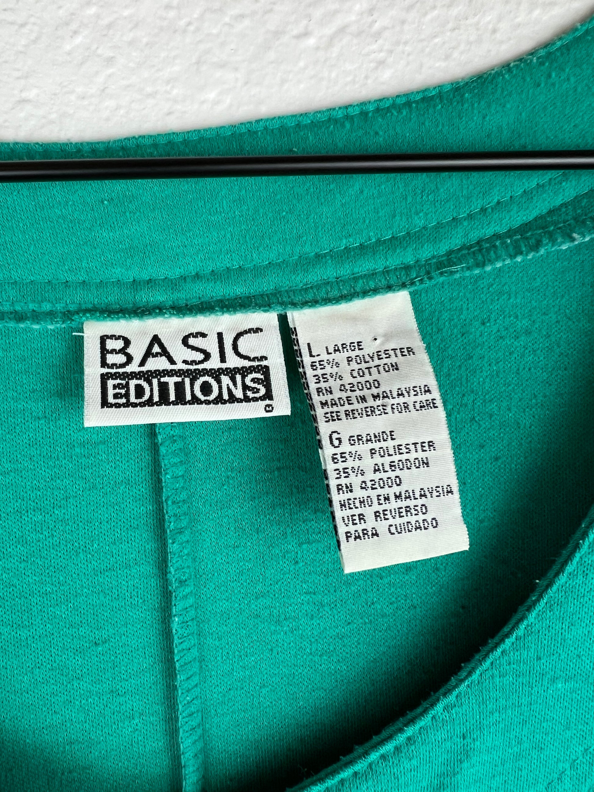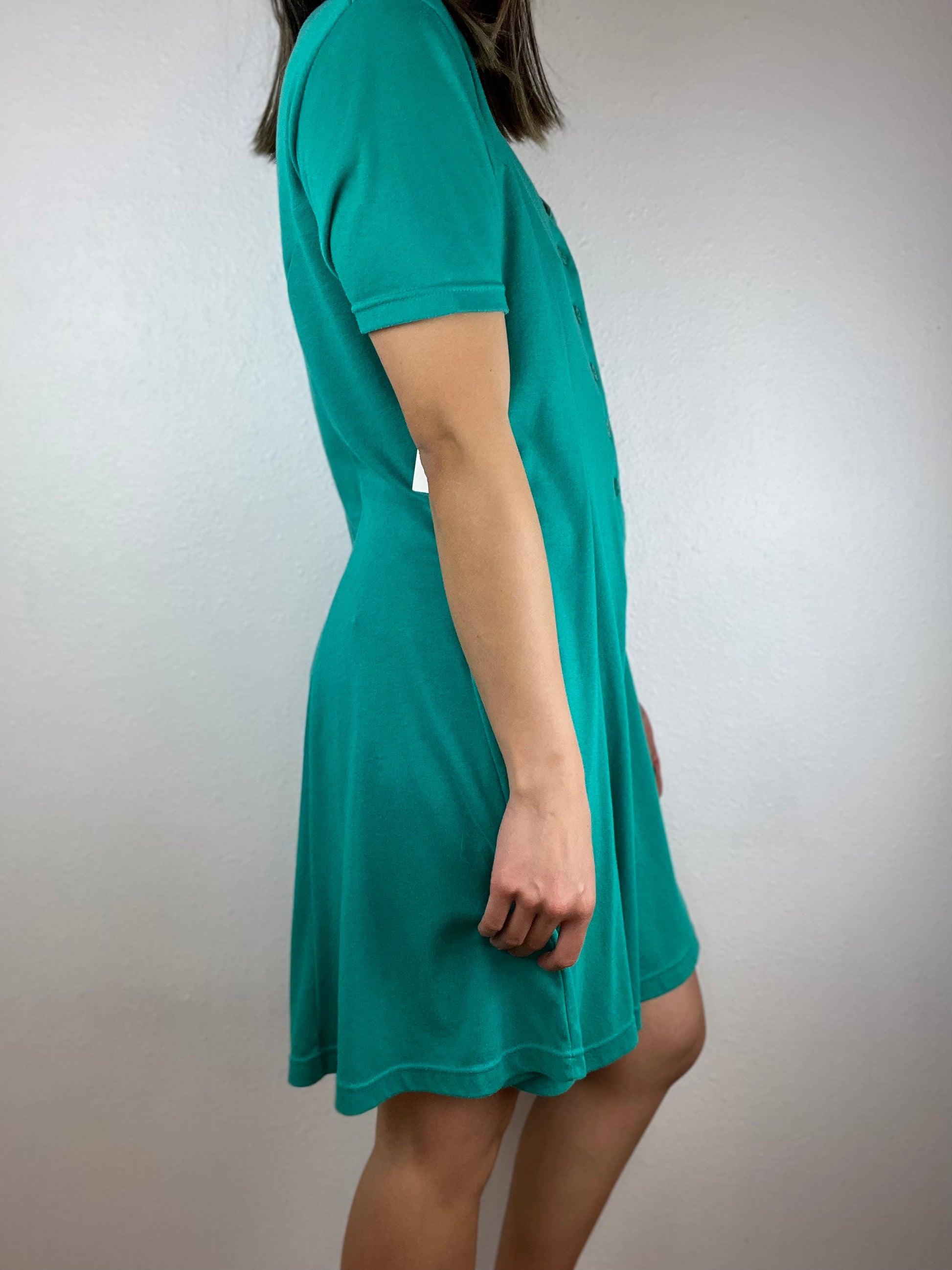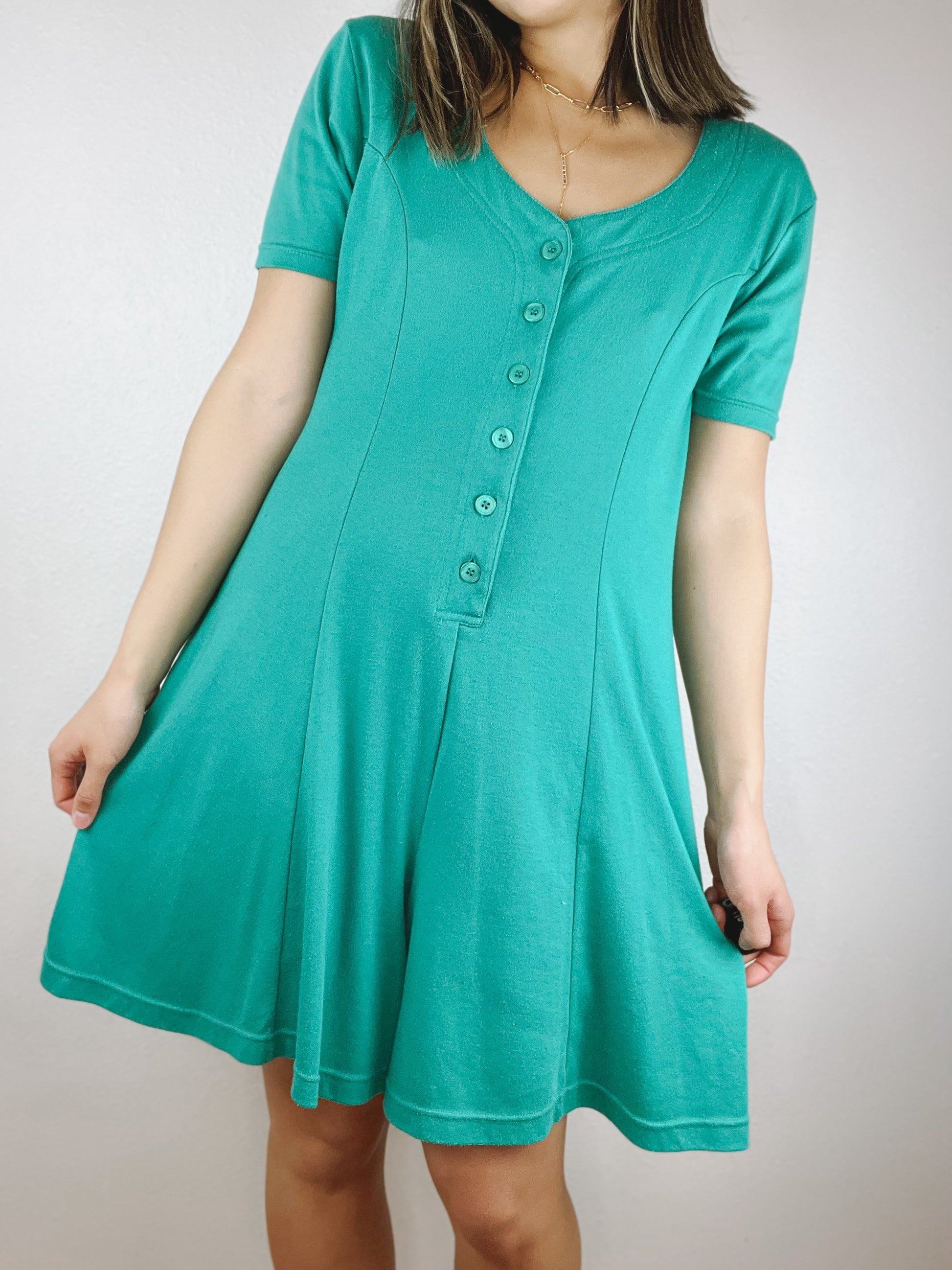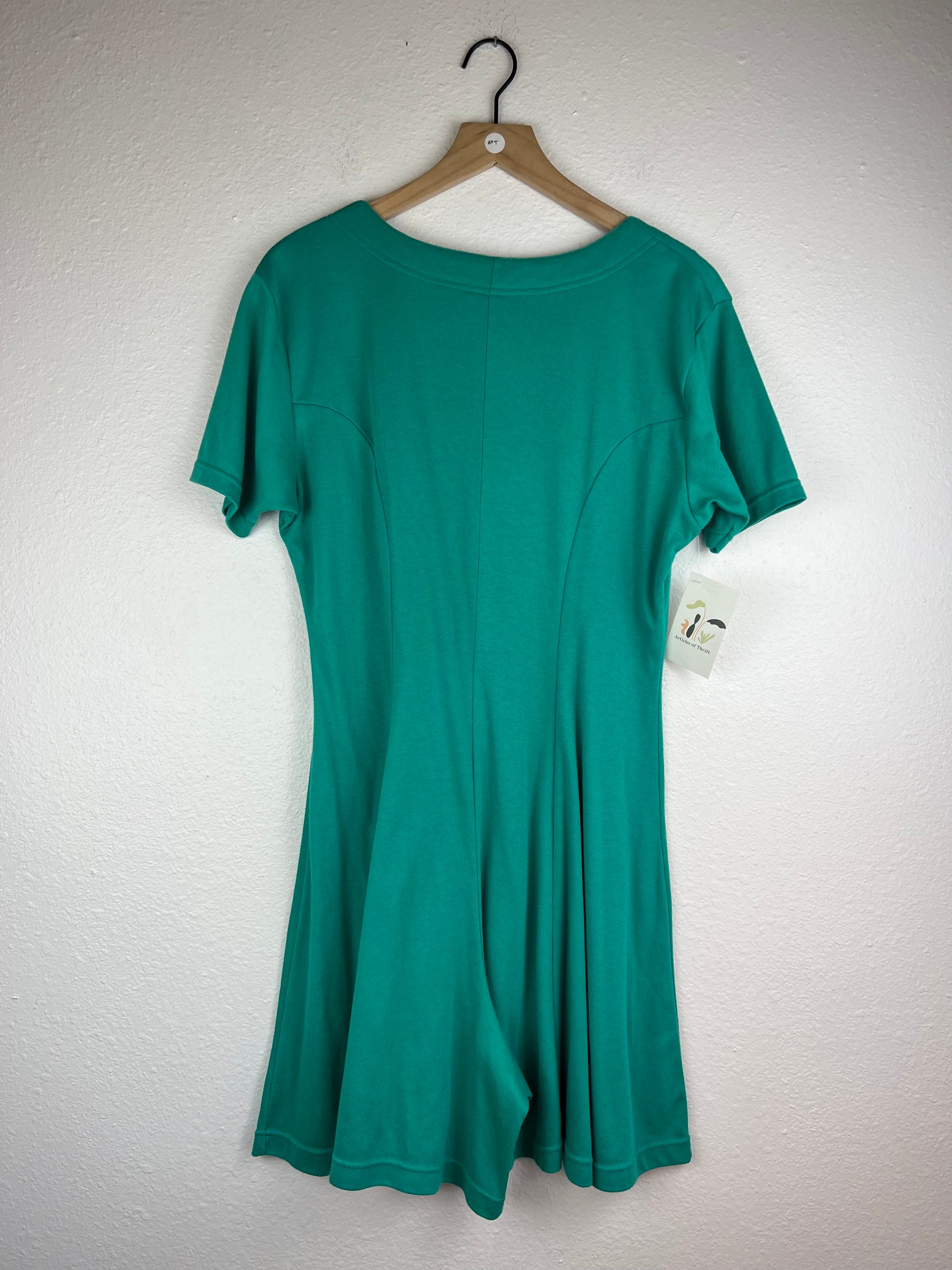 Basic Editions teal green button front scoop neck romper. Comfy and casual cotton material that's easy to throw on and head out the door.