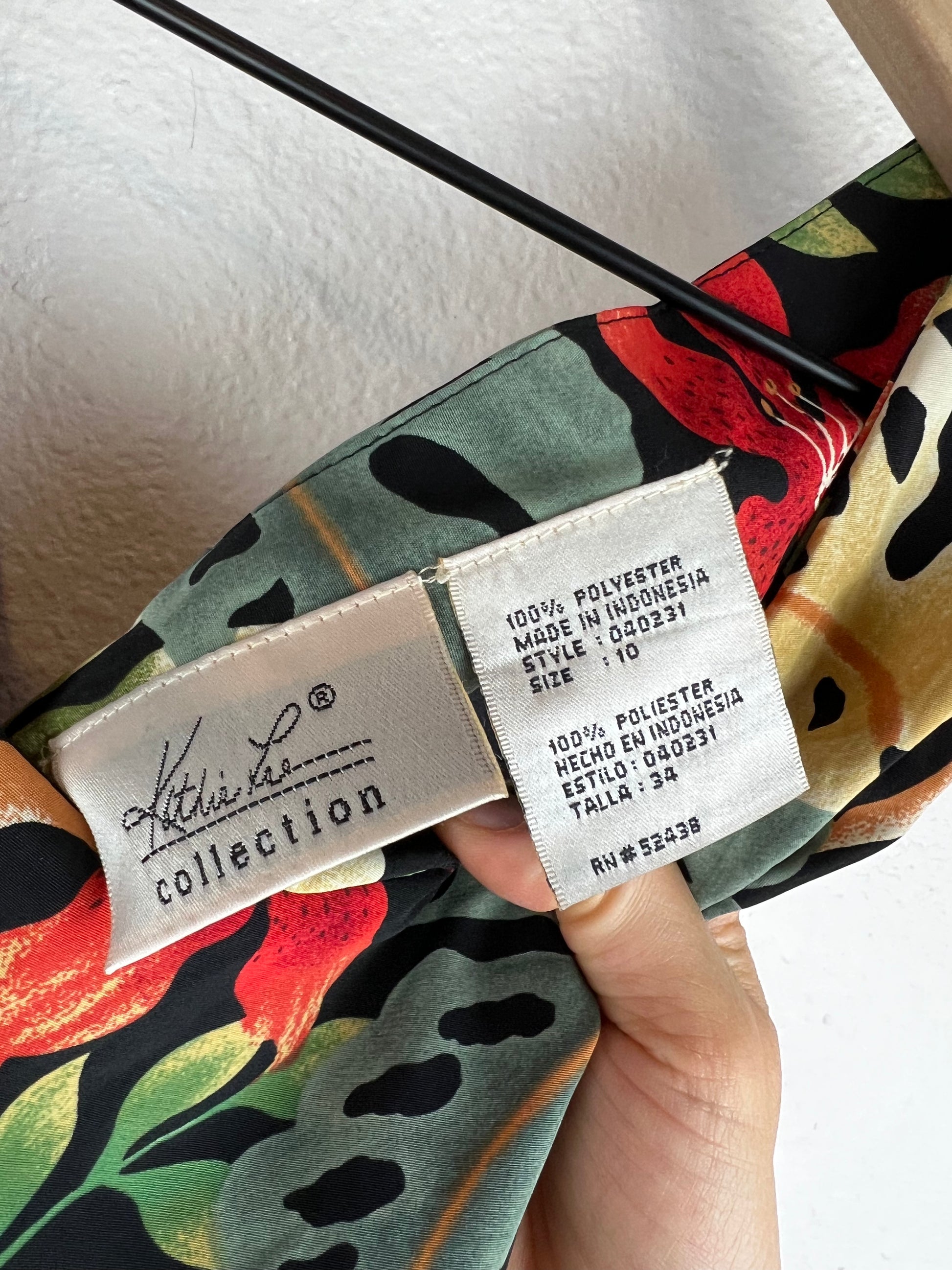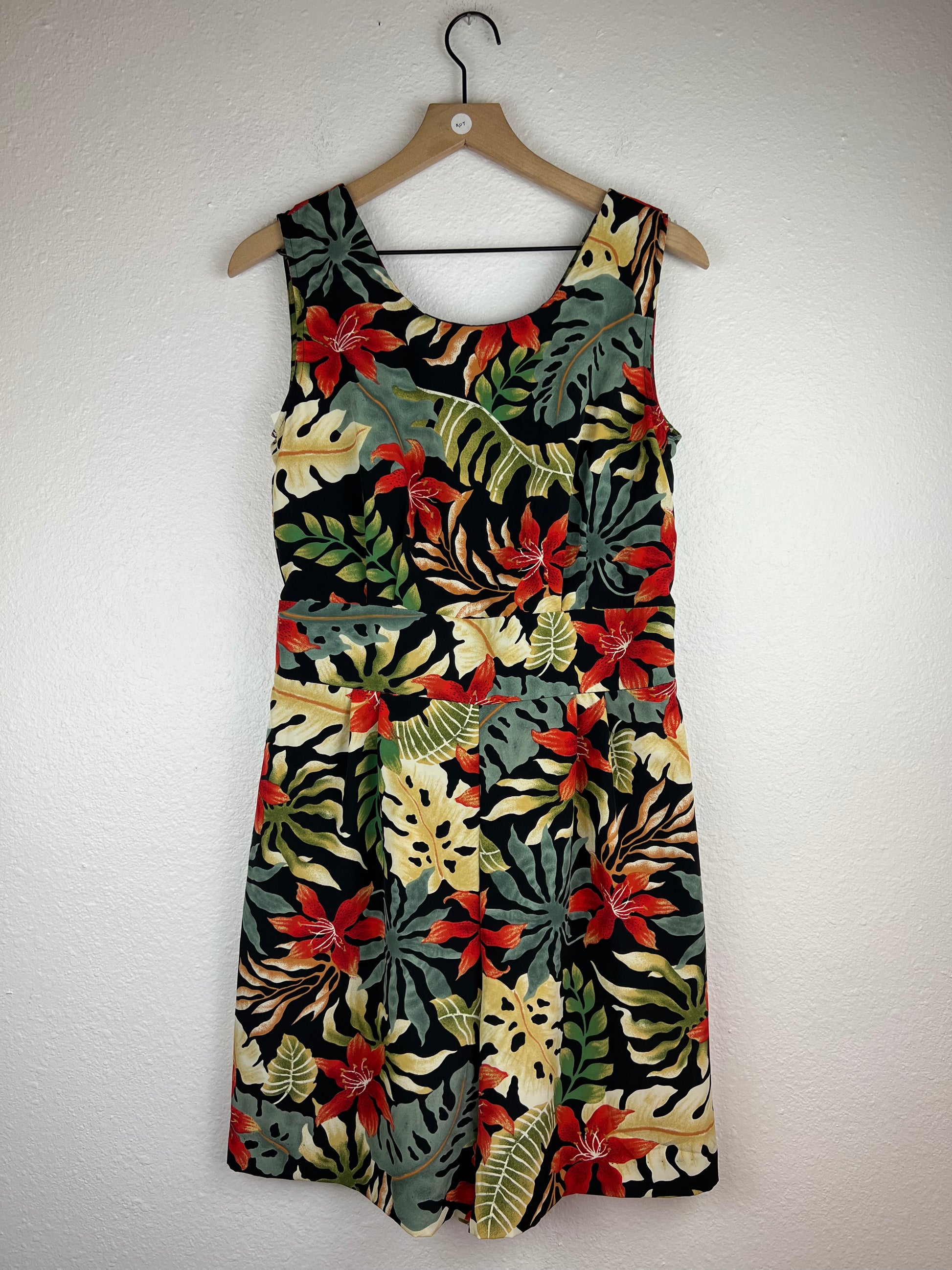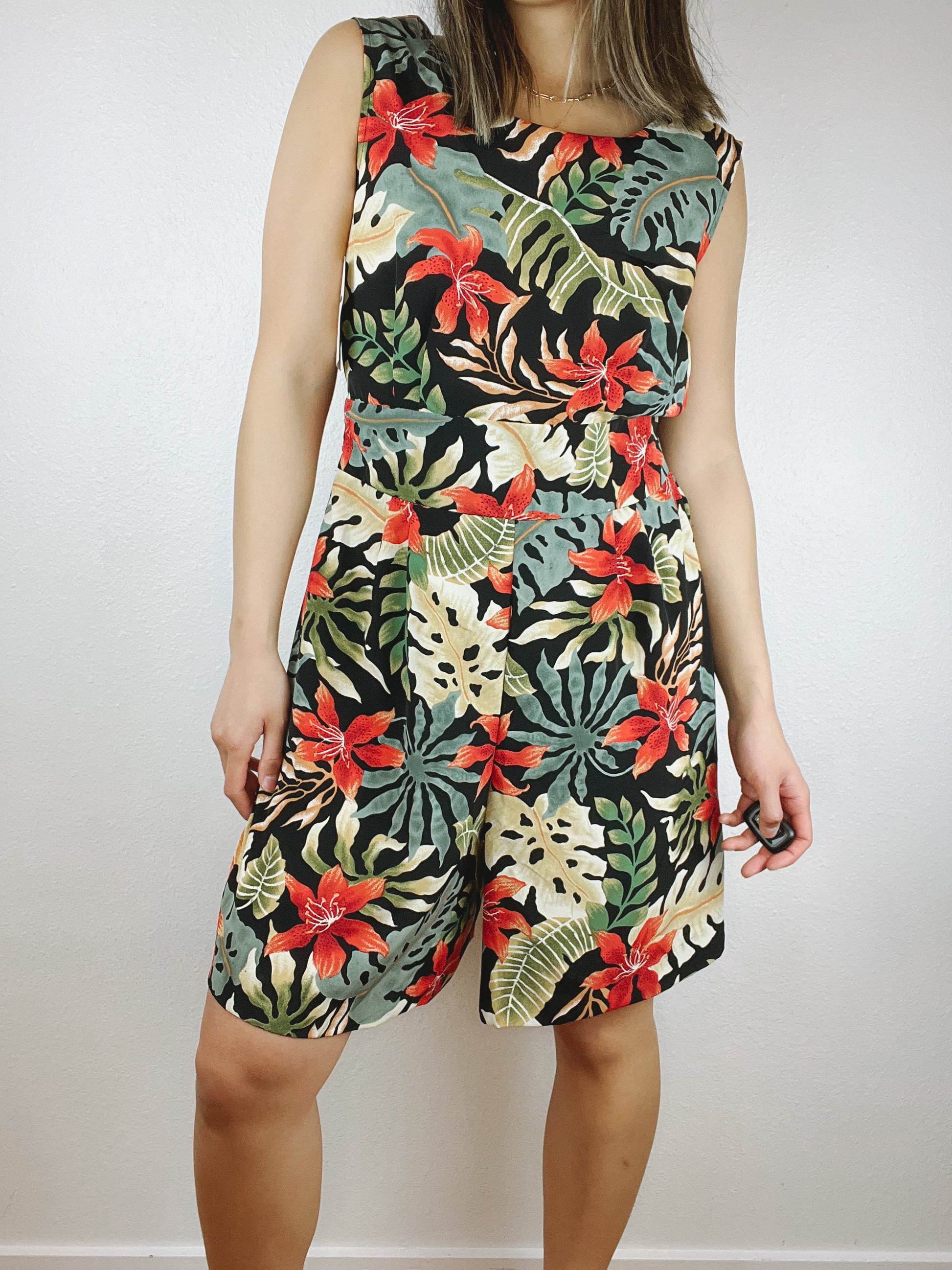 Kathie Lee Collection bold tropical flora print romper with keyhole back. Stretchy waistband for added comfort and fun romping around the beach!