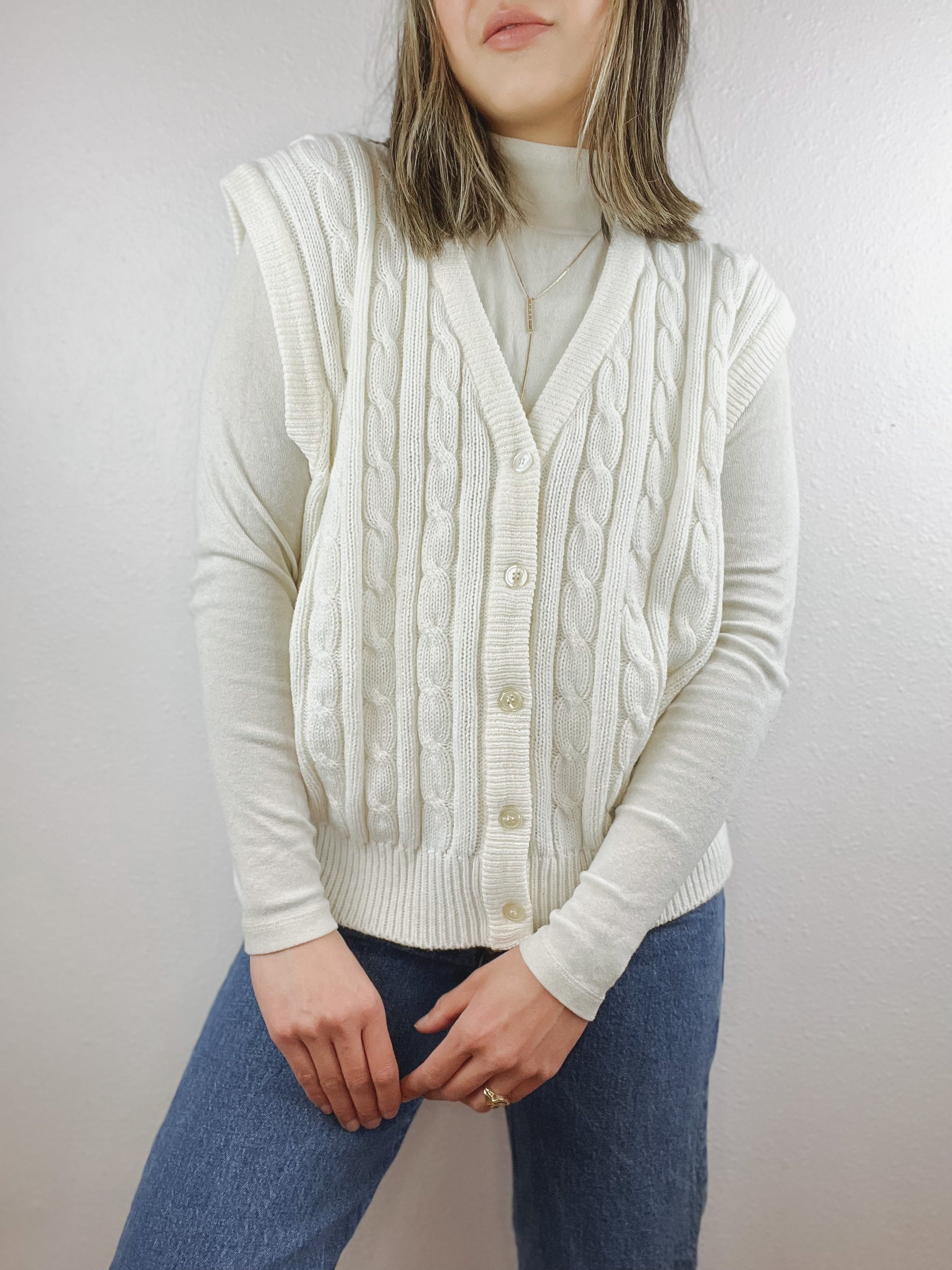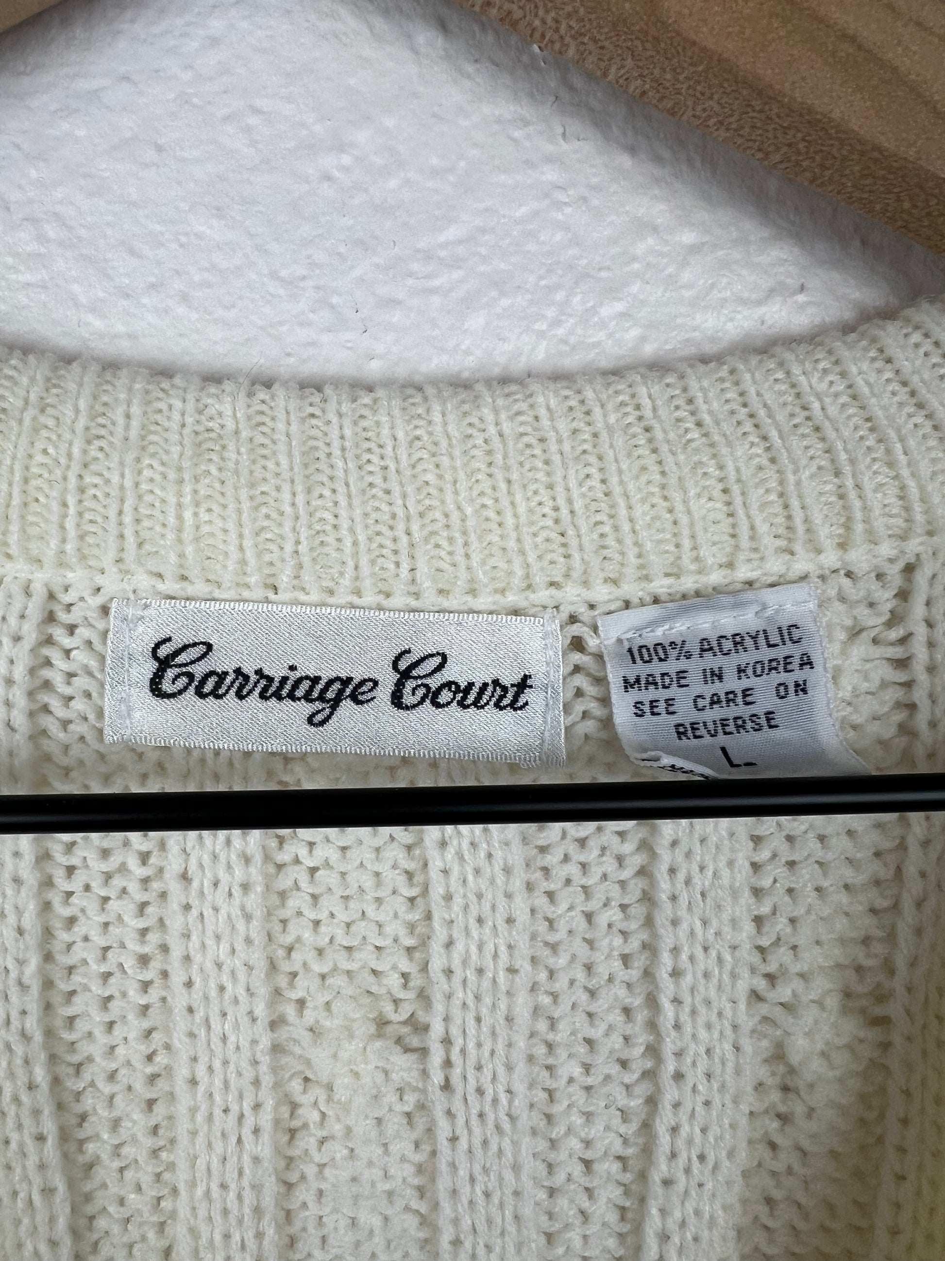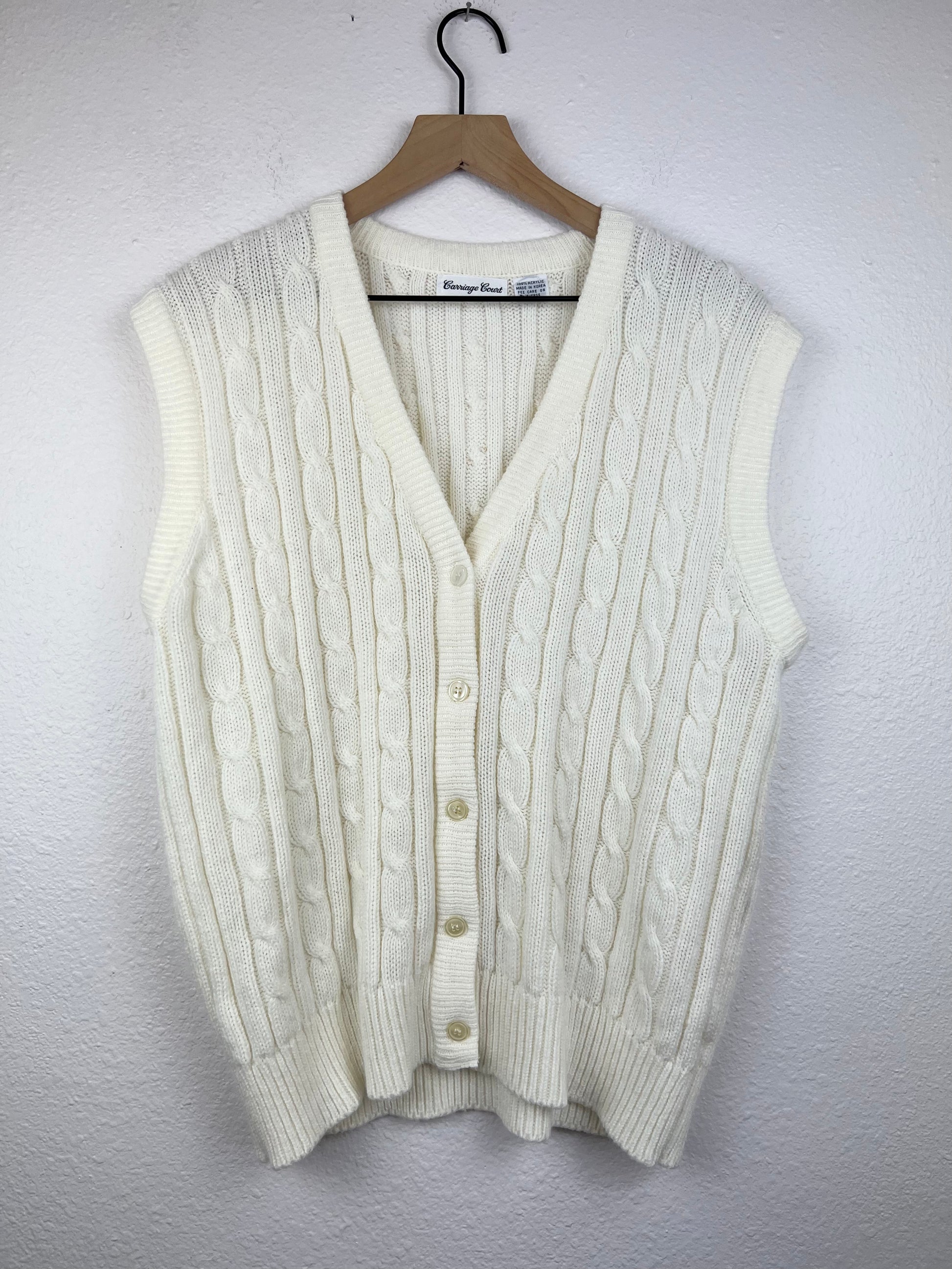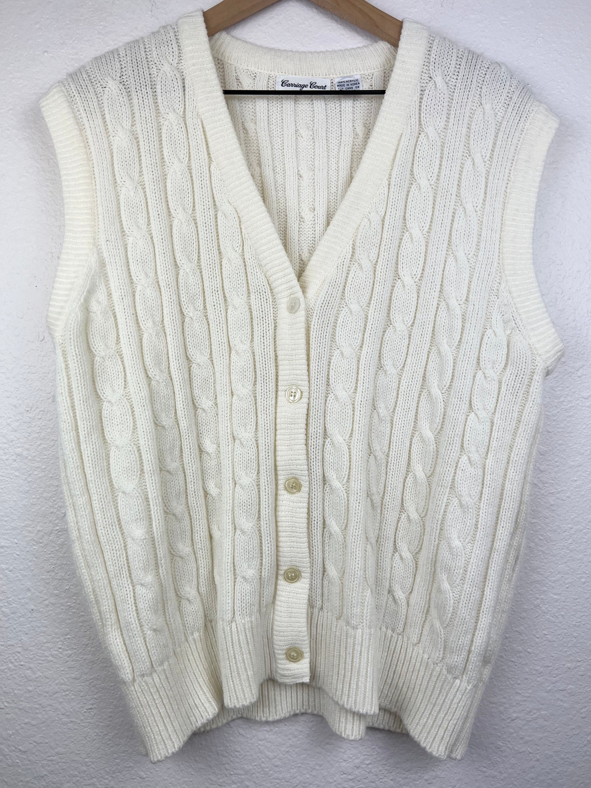 Carriage Court button up cable knit sweater vest. Great boxy fit.