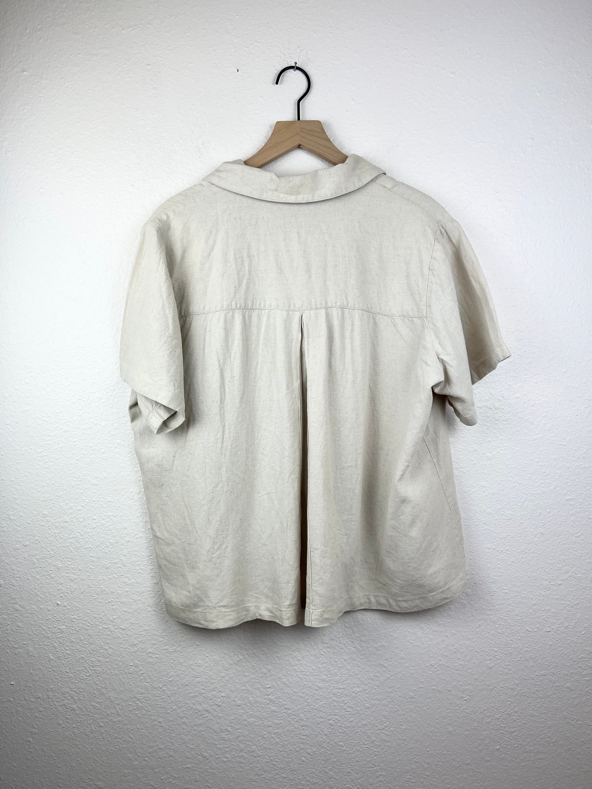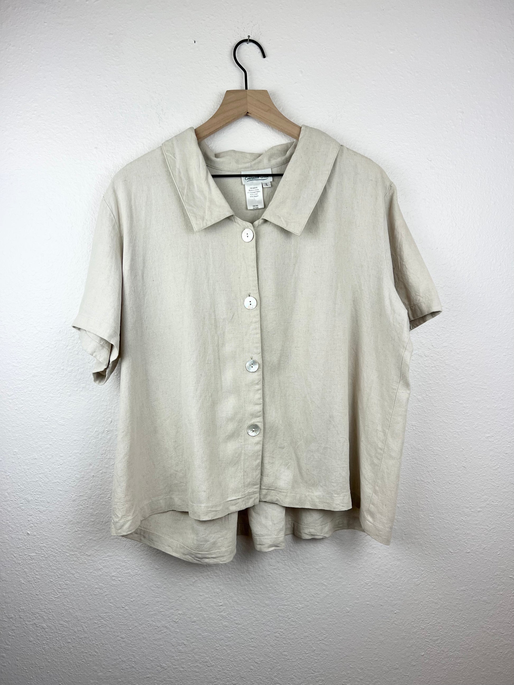 Coldwater Creek boxy neutral button up short sleeve top with shell buttons