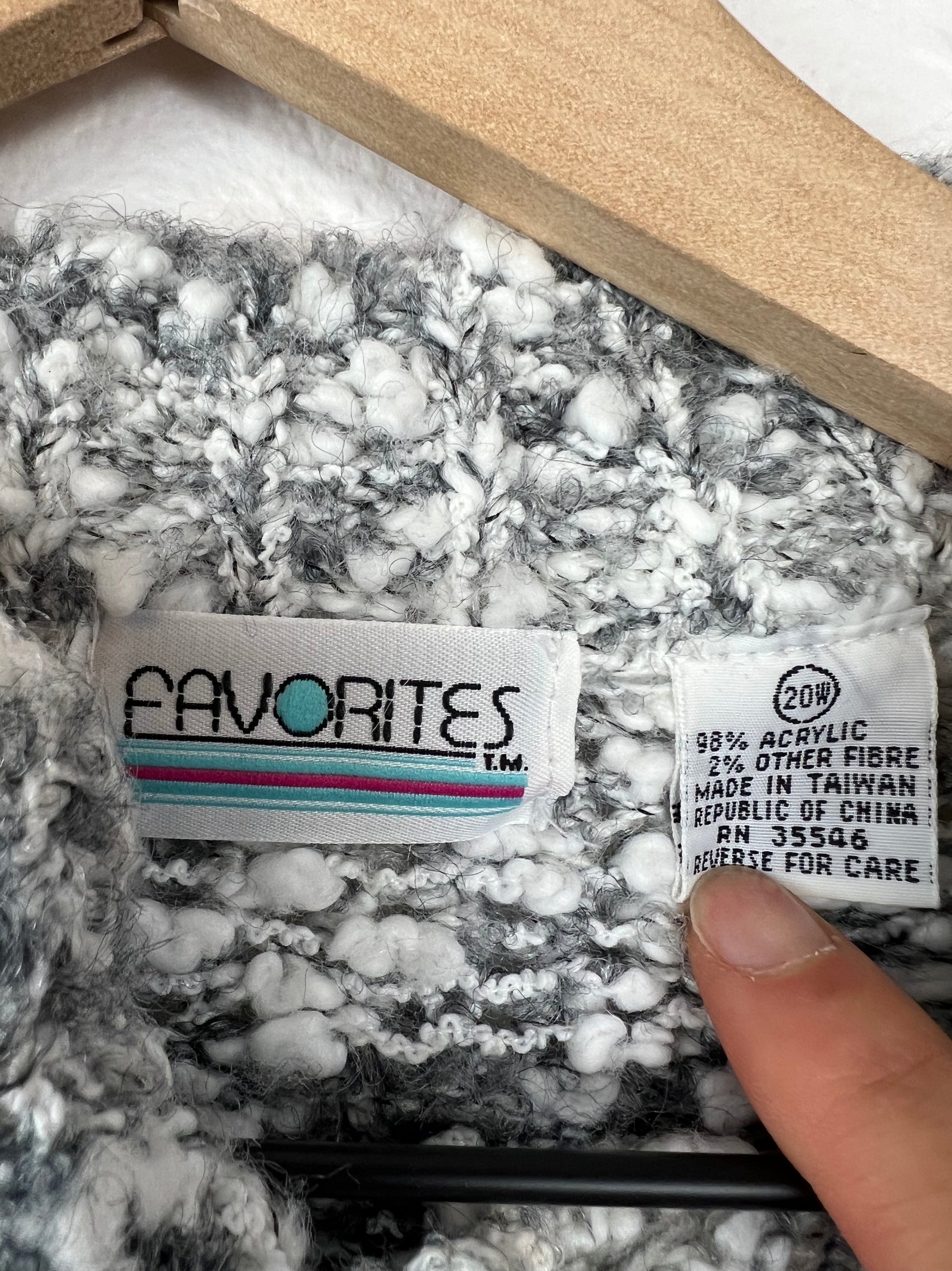 Vintage Favorites heathered grey and white 3/4 sleeve sweater with notched collar detailing
