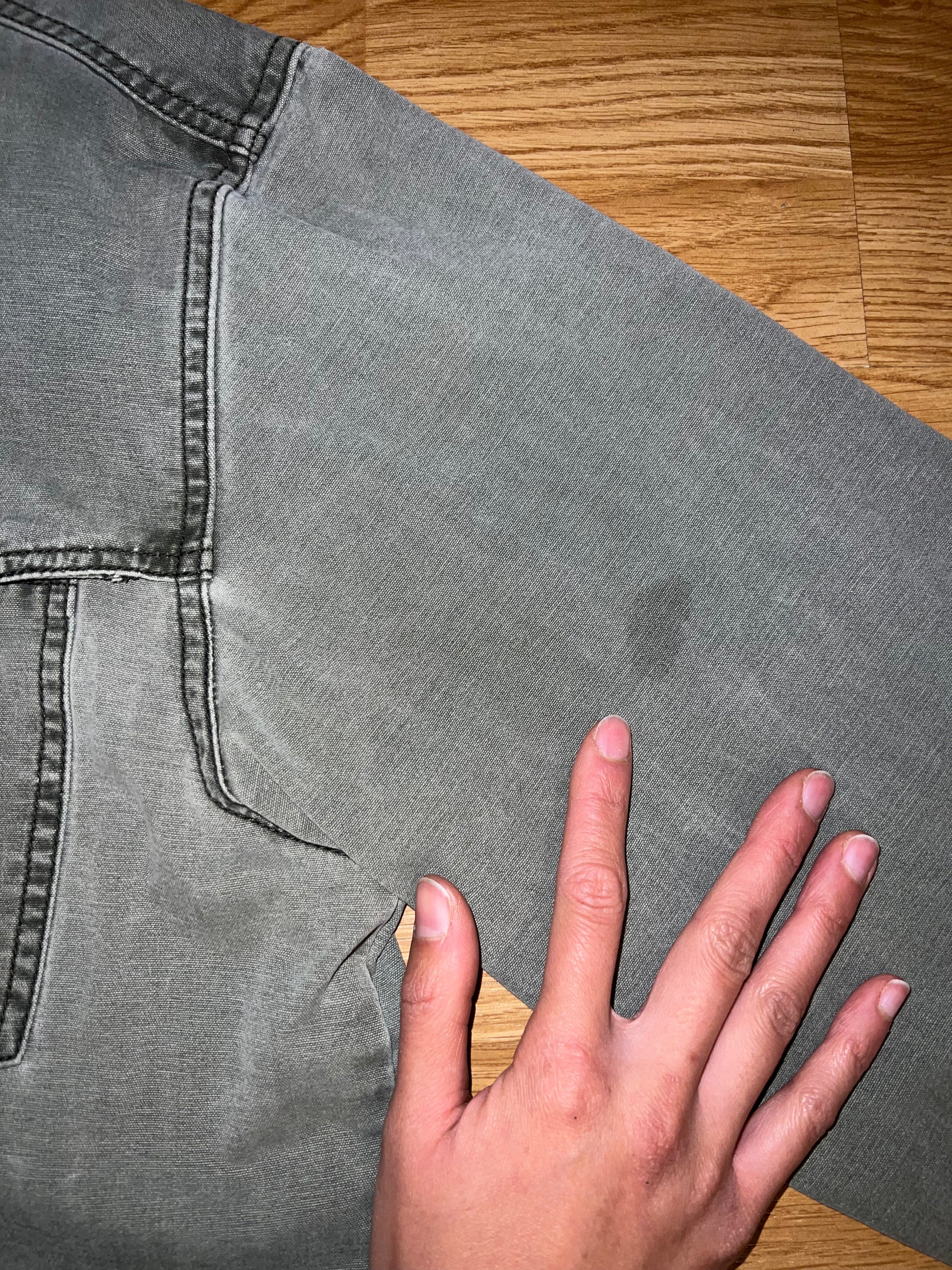 Great with slight wear throughout, small stain on left upper arm as shown (not very noticeable).