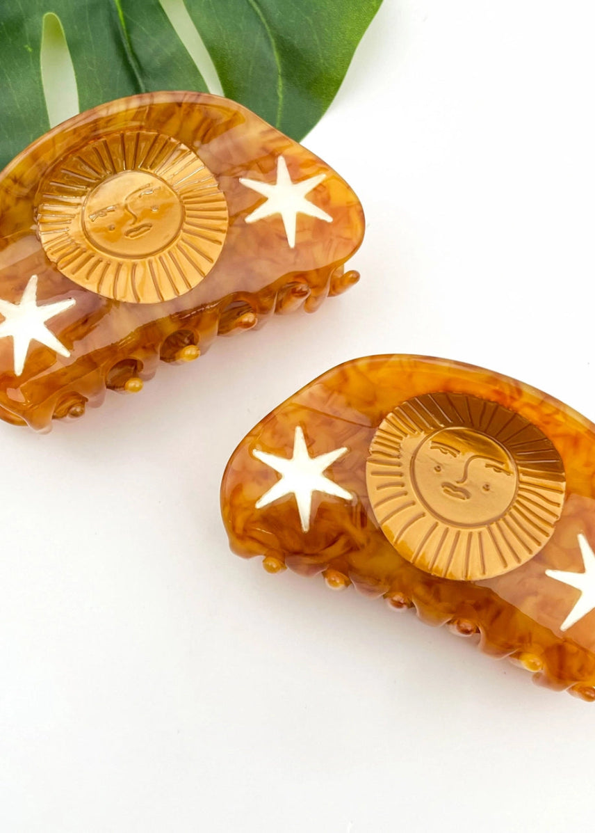 Please note that due to the nature of the material, each hair accessory will have differences in color and pattern. Each hair accessory is made from individually cut pieces of cellulose acetate. Each one is unique!