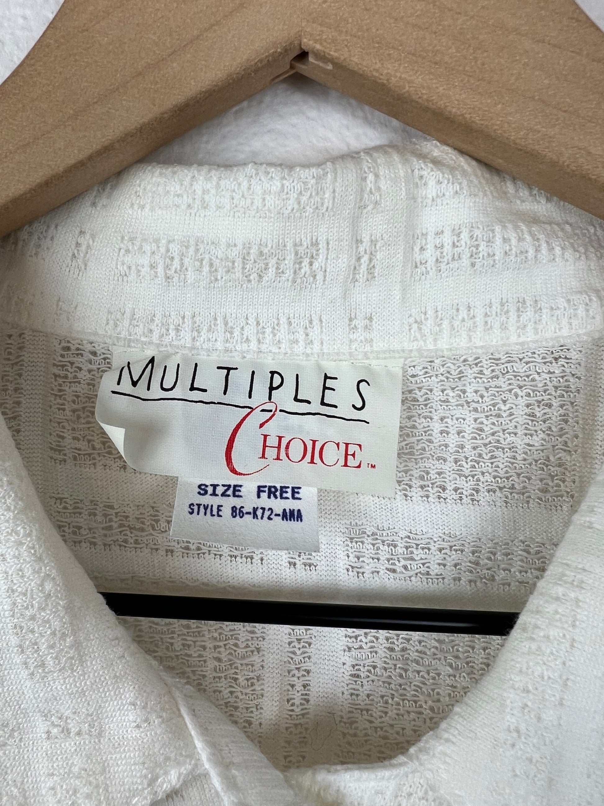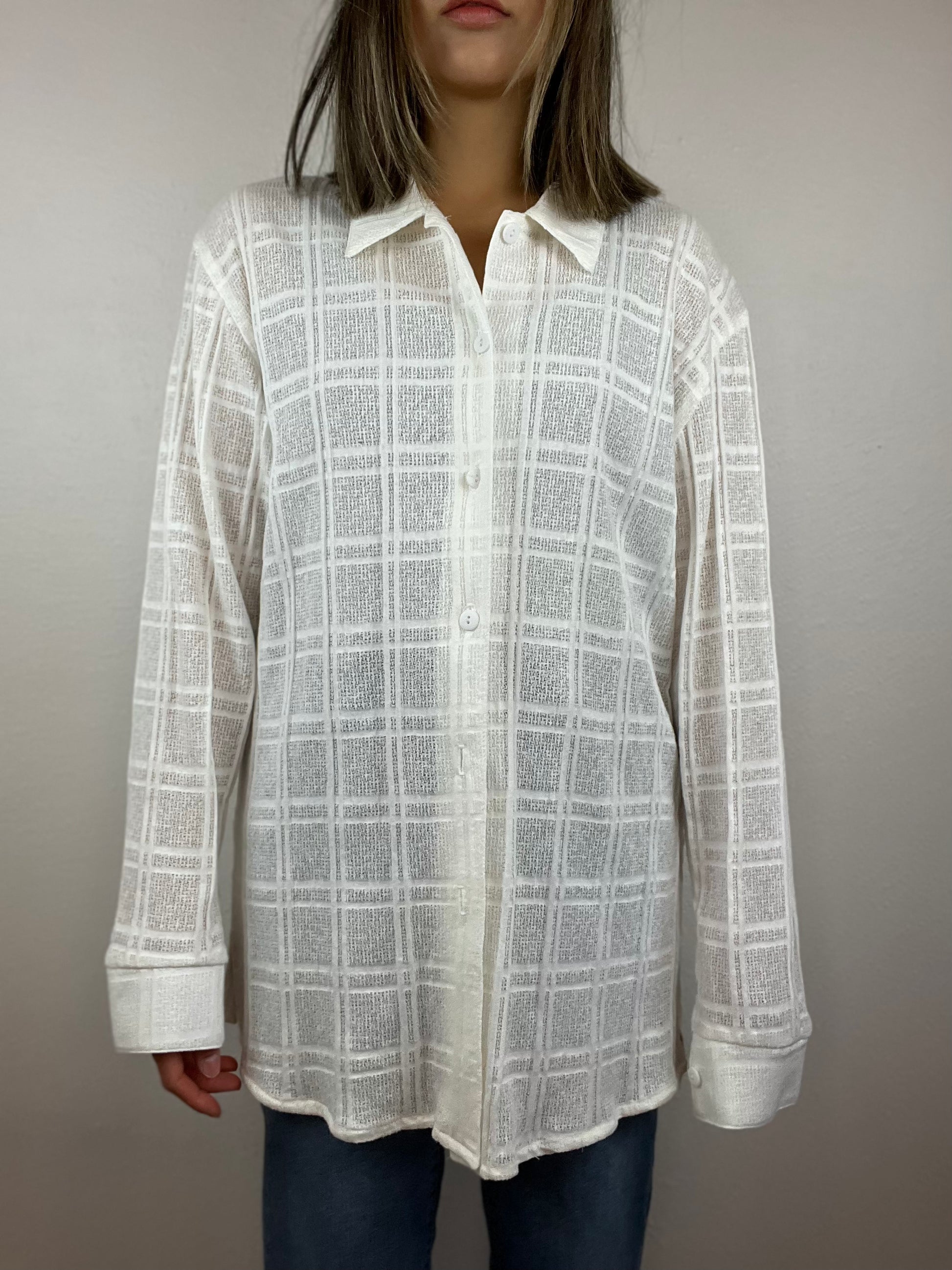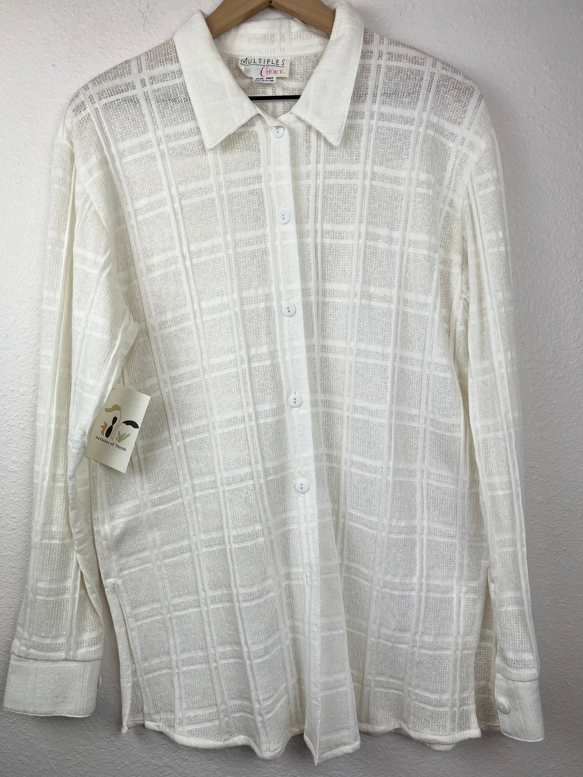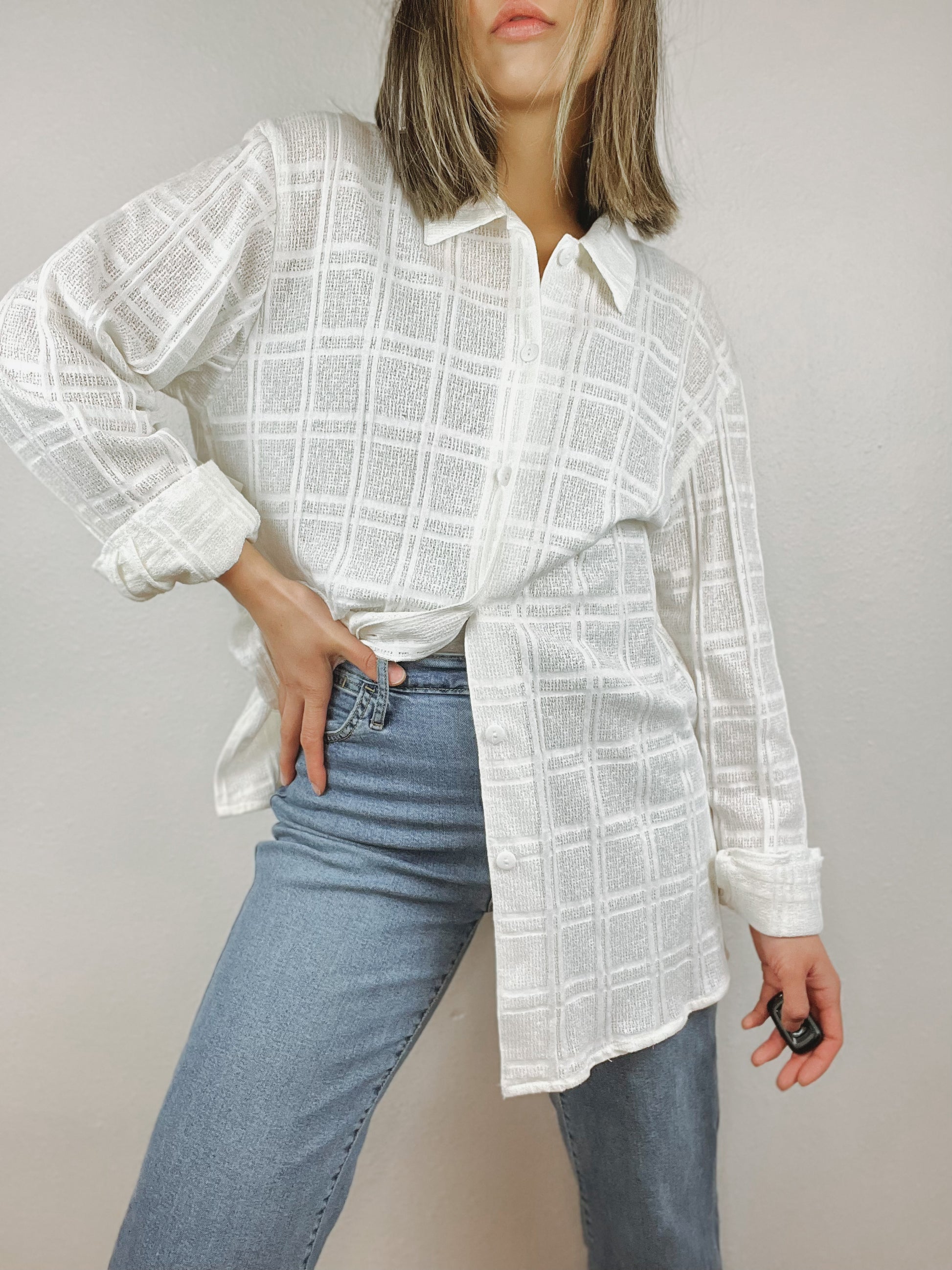 Vintage Multiples Choice white semi sheer patterned long sleeve button up featuring two side slits for a little flare